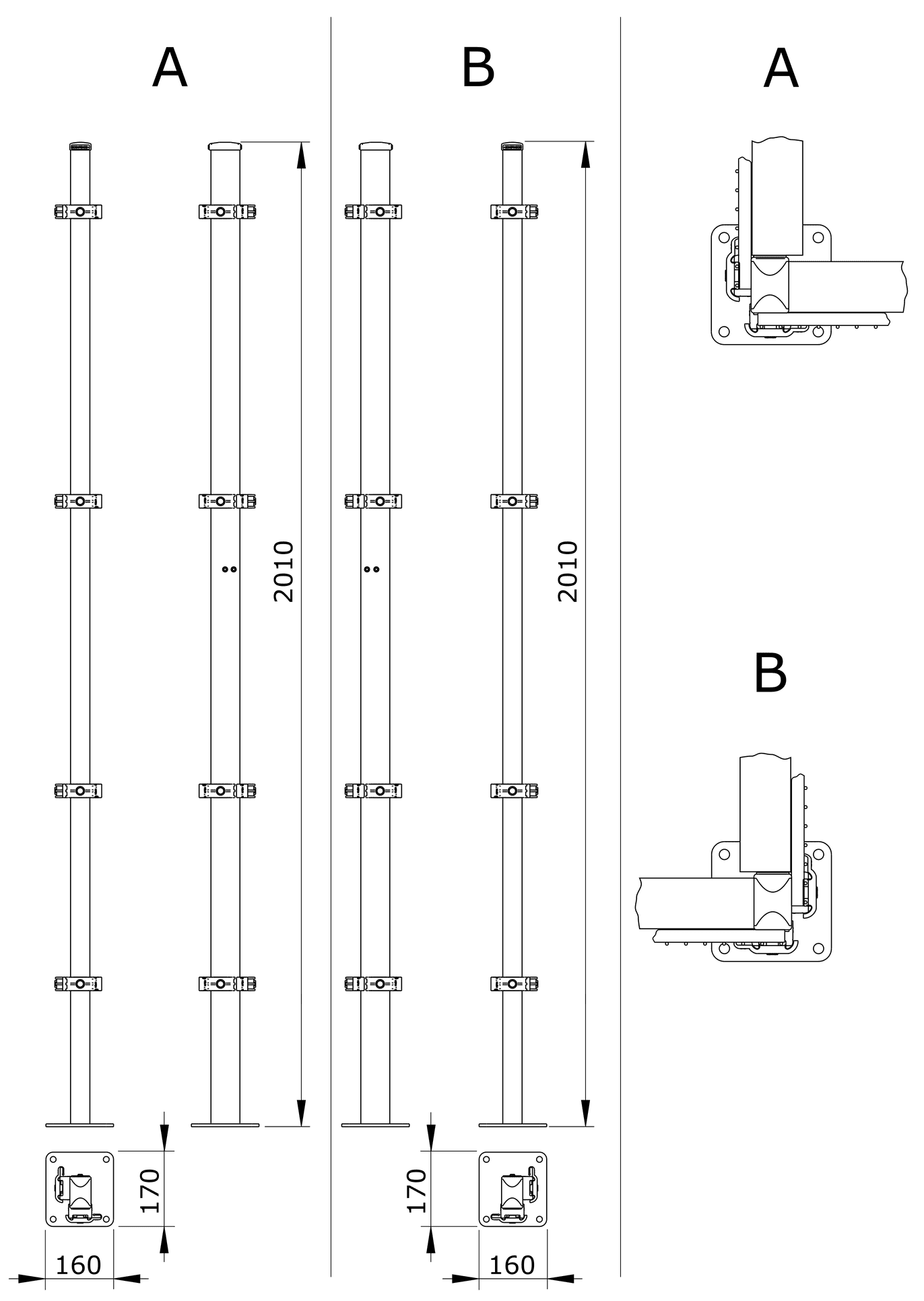 Universal-Eckpfosten ECONFENCE® BASIC LINE ABSTURZSICHERUNG 60x40x2000MM